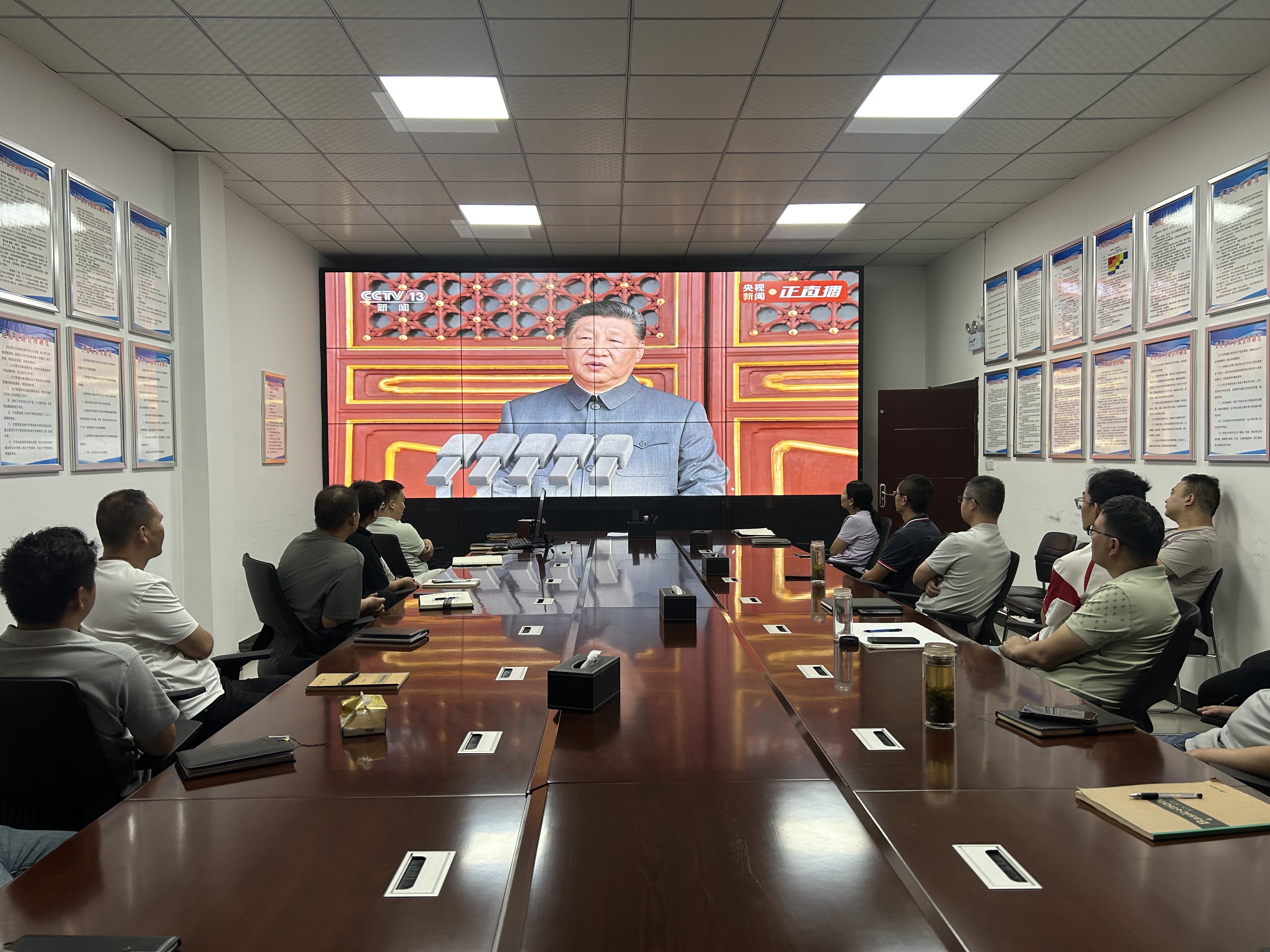 當(dāng)天,各子公司結(jié)合礦山生產(chǎn)實(shí)際設(shè)置觀看點(diǎn),確保一線礦工、技術(shù)人員及后勤保障人員都能準(zhǔn)時(shí)觀看。上午9時(shí)整,紀(jì)念大會(huì)正式開始。直播畫面中,天安門廣場(chǎng)莊嚴(yán)壯麗,長(zhǎng)安街盛裝以待,大家全神貫注觀看閱兵盛況,認(rèn)真聆聽習(xí)近平總書記重要講話,共同感受大國(guó)崛起的磅礴力量。當(dāng)看到受閱方隊(duì)邁著鏗鏘步伐通過(guò)天安門、先進(jìn)裝備列陣亮相時(shí),大家更是心潮澎湃,為祖國(guó)的強(qiáng)大和人民軍隊(duì)的威武雄壯而感到無(wú)比自豪。