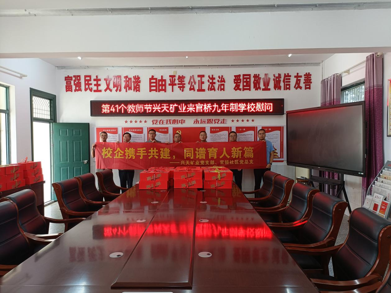 9月10日,興天礦業(yè)黨支部聯(lián)合官橋社區(qū)黨總支前往諭興九年制學(xué)校、官橋九年制學(xué)校,開展教師節(jié)慰問活動(dòng),向辛勤耕耘在教育一線的教師們致以節(jié)日問候和崇高敬意。